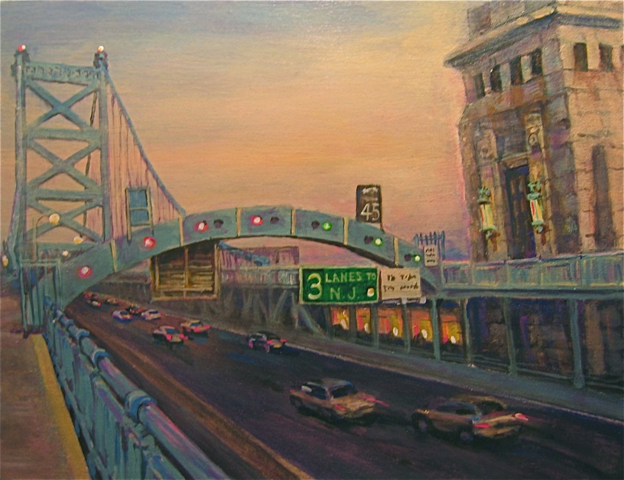 | "Three Lanes to Jersey" Reverse angle Faux Red Mahogany Floater, about 22 x 18 |